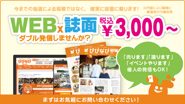 締め切り日までにWEB投稿した内容* が、フリーペーパーに掲載される可能性がございます。