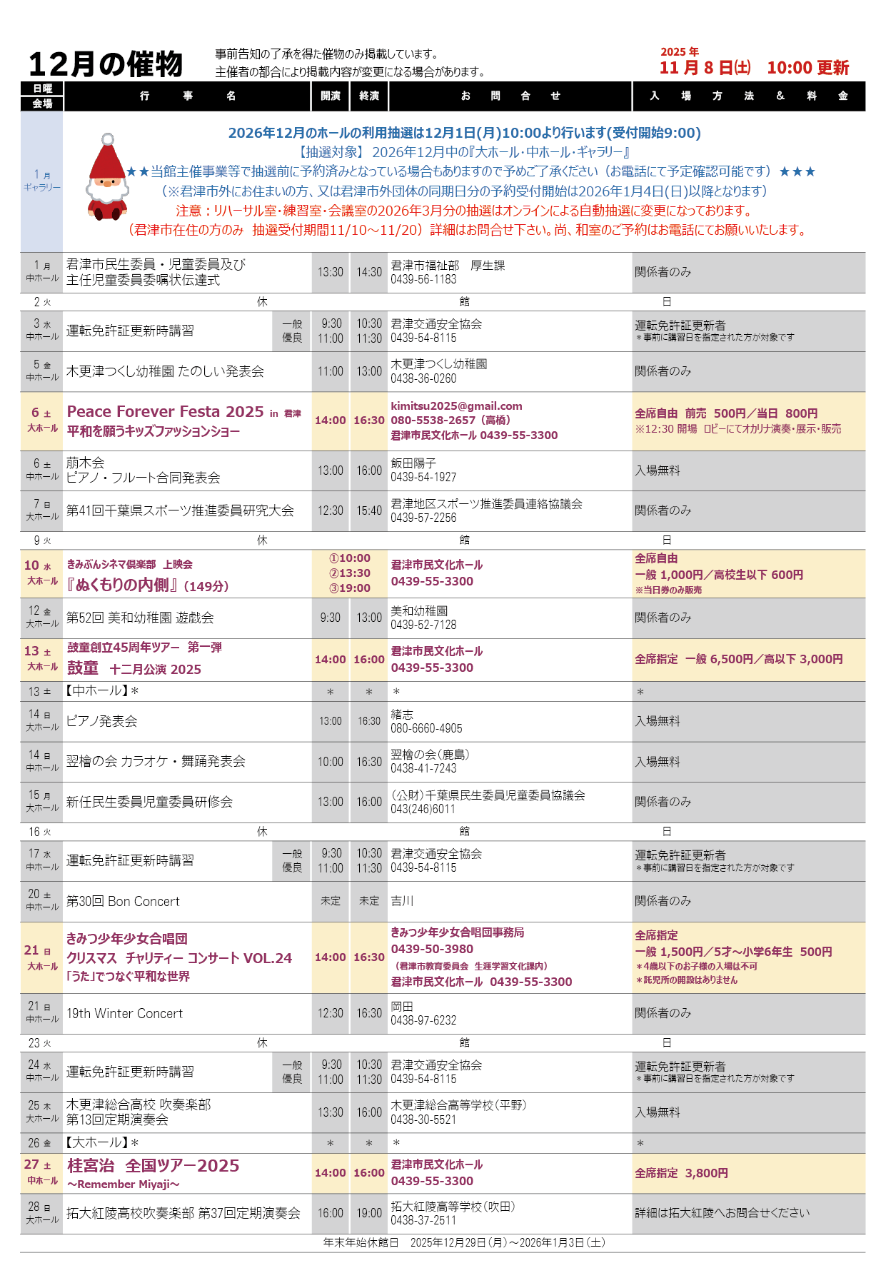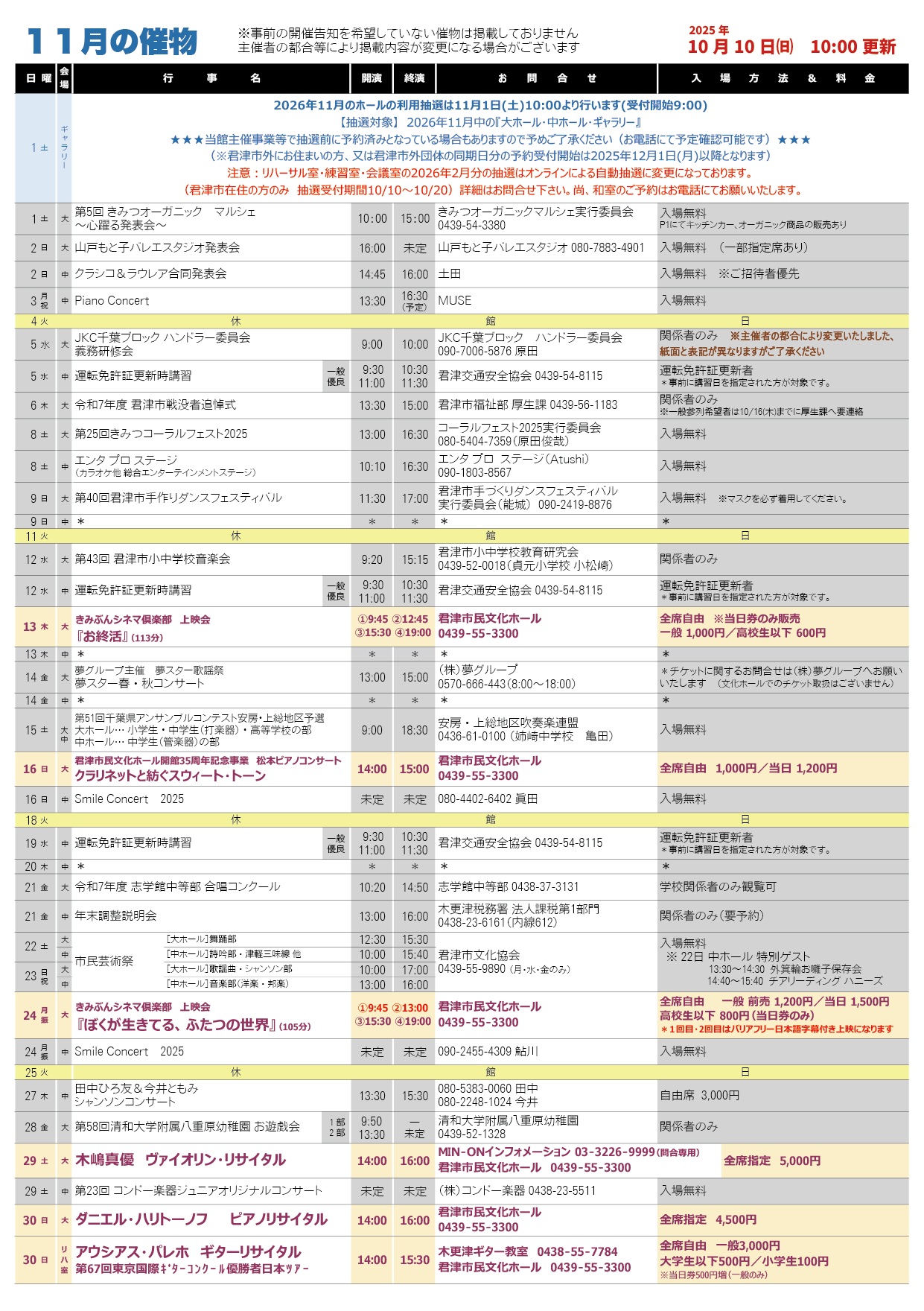 君津市民文化ホール - イベントスケジュール